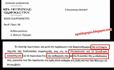 Επομενως πατερ Μακαριε, θα πρεπει το εγγραφο αυτό να σου το στειλη πισω ο πατηρ Φωτιος και να σου υπενθυμισει ότι ΕΣΥ εισαι ο κατηγορουμενος και οχι αυτος, εκανες λαθος και το εστειλες σε ξενο παραληπτη.