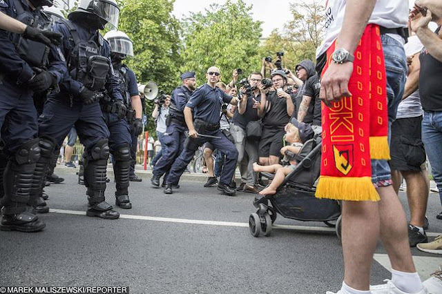 Μεταξύ των συλληφθέντων είναι και ένας 37χρονος πατέρας, ο οποίος προσπάθησε να σταματήσει την πορεία με το καροτσάκι στο οποίο είχε τον 3χρονο γιο του (!) και με τον τρόπο αυτόν κατηγορήθηκε από την αστυνομία ότι «εξέθεσε το παιδί σε άμεσο κίνδυνο απώλειας της ζωής του ή σοβαρής βλάβης στην υγεία του».
