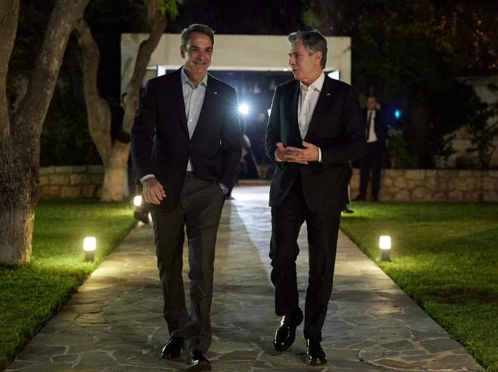 Με τον Έλληνα πρωθυπουργό Κυριάκο Μητσοτάκη συναντήθηκε σήμερα στην Κρήτη ο υπουργός Εξωτερικών Άντονι Μπλίνκεν.