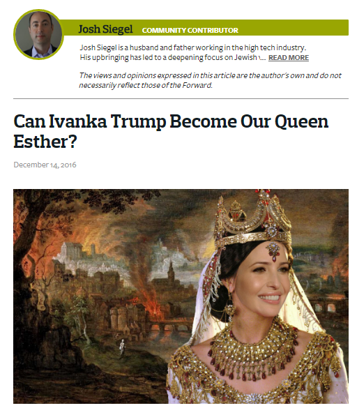 Φαίνεται πάντως, ότι από καιρό κάποιοι Εβραίοι αναρωτιόντουσαν εάν η Ιβάνκα μπορούσε να γίνει “η δική τους” βασίλισσα Εσθήρ…