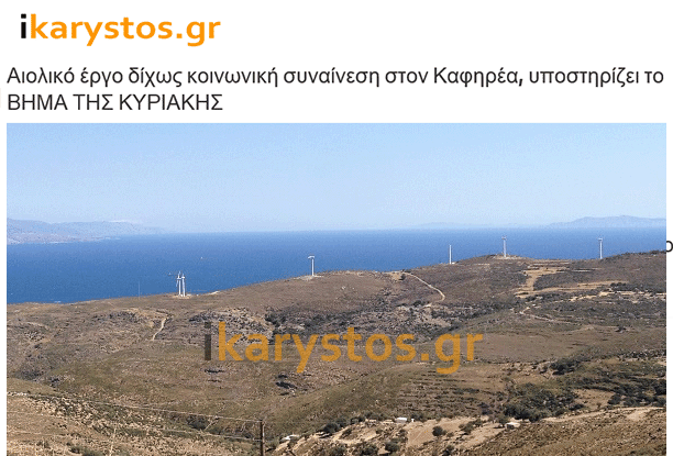 Όχι καλοί μου άνθρωποι. Ο καυγάς δεν είναι για ανταποδοτικά τέλη. Ο καυγάς είναι πώς θα γλυτώσουμε από ταπεταμένα και 100% ΜΗ ανταποδοτικά λεφτά που πετάμε για τις ΑΠΕ και την ΜΗ ανατρέψιμη ζημιά που κάνουν σε όλη την Ελλάδα. Οι ΑΠΕζήδες μας, παριστάνουν τους νομοταγείς πολίτες, αλλά οι αιολικοί είναι Μαφία, και οι αιολικοί της Νότιας Εύβοιας, εεε…