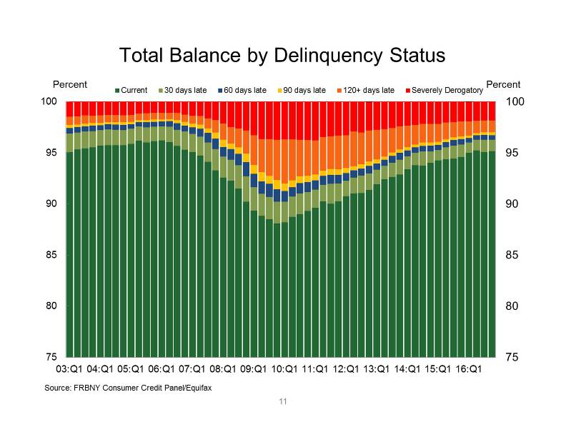 - Mortgage delinquencies remained mostly unchanged and the delinquency transition rates for current mortgage accounts improved slightly.