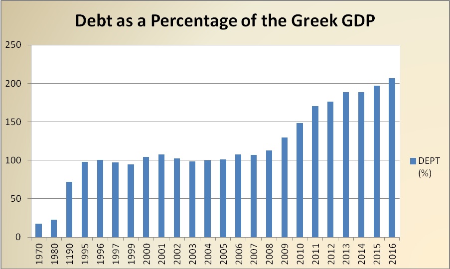 Εξέλιξη ελληνικού χρέους 1970-2016 σύμφωνα με την Eurostat