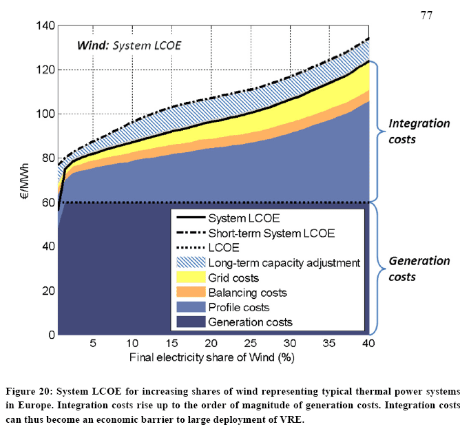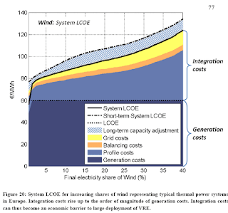 Αλλά και αυτό το LACE δεν επαρκεί για να καλύψει το κόστος ενσωμάτησης πολλών διαλειπουσών ΑΠΕ σε ένα δίκτυο, αφού, όπως είδαμε στην προηγούμενη ανάρτηση, και η ΕΟΝ το λέει έμμεσα από το 2005, το κόστος τους ανεβαίνει εκθετικά όσο μπαίνουν περισσότερες.