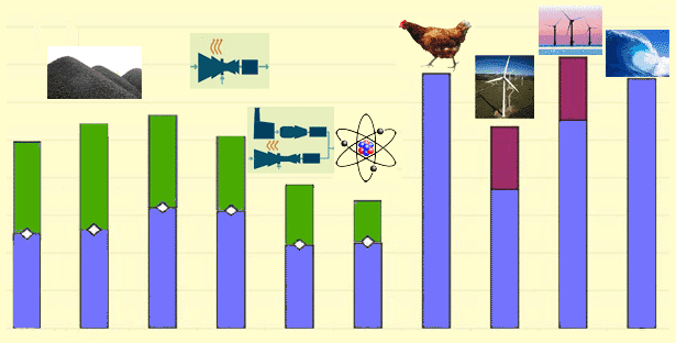 Αν οι λεπτομέρειες του παραπάνω γραφήματος θέλουν επικαιροποίηση μετά 13 χρόνια, η ουσία παραμένει: Η απλή ηλεκτροπαραγωγή από κάρβουνο είναι φθηνή. Η ηλεκτροπαραγωγή από κάρβουνο γίνεται ακριβή μόνο με φόρο άνθρακα και με εξεζητημένους περιορισμούς. Η παραδοχή για φόρο £30 (ή €30) τον τόνο για CO2 δεν επέζησε και δεν αντέχεται (αφού από μόνη της διπλασιάζει το κόστος!) η δε θεωρία περί “συλλογής του CO2 στην ηλεκτροπαραγωγή είναι εξωπραγματικά ακριβή. Το δε ρεύμα από αιολικά και άλλες μη κατανεμόμενες ΑΠΕ δεν είναι φθηνό, ιδίως με το κόστος διαχείρισης της κουτουρού μεταβλητότητας — αλλά αυτό είναι και το θέμα μας.