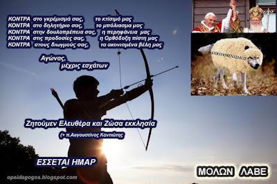 Ο πιστός λαός και οι απειροελάχιστοι παπάδες που ΑΠΕΔΕΙΞΑΝ ήδη ότι γράφουν στα παλιά τους τα παπούτσια την μισθοδοσία, την ασφάλιση και την σύνταξη τους και πολεμούν με τα θεριά του οικουμενισμού.