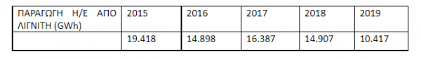 Παρά τους ισχυρισμούς του ΣΥΡΙΖΑ, η απολιγνιτοποίηση, όπως φαίνεται στον πίνακα που ακολουθεί, έχει ξεκινήσει εδώ και αρκετά έτη, με τη δραστική μείωση της χρήσης του λιγνίτη στην ηλεκτροπαραγωγή.