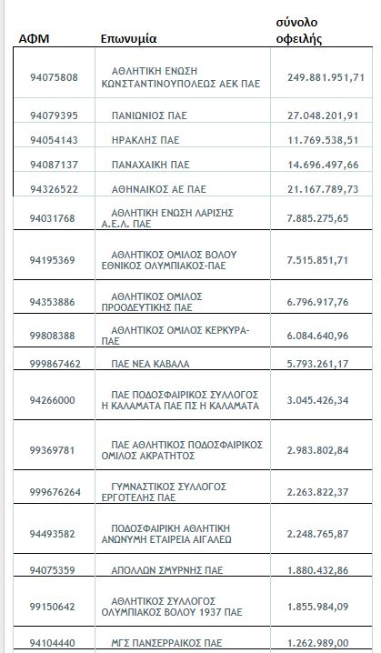 Το γεγονός ότι δεν συμπεριλαμβάνονται τα ρυθμισμένα χρέη, αυτομάτως βγάζει εκτός λίστας την ΠΑΕ Παναθηναϊκός, η οποία έχει οφειλές αλλά τις έχει εντάξει σε κάποια από τις ρυθμίσεις.