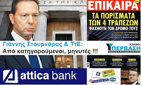 Γιατί ο Γιάννης Στουρνάρας δεν έστειλε όλα τα πορίσματα αυτά στον Εισαγγελέα, όπως έπραξε με το αντίστοιχο της ATTICA BANK; Ήταν μήπως τα πορίσματα των 4 συστημικών τραπεζών καλύτερα από αυτό της ATTICA BANK ;;;