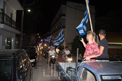 ην ώρα που πραιτοριανοί φρουροί φυγάδευαν τον κομμουνιστή υπουργό εξωτερικών κοτζιά από την πίσω πόρτα του υπουργείου (δείτε το βίντεο) για να μην έρθει αντιμέτωπος με την οργή και την χλεύη μιας ομάδας Ελλήνων που πεισματικά εδώ και πάνω από ένα μήνα βρίσκονται έξω από την Ηρώδου Αττικού ζητώντας την παραίτηση του συνενόχου της εθνικής προδοσίας πλέον, προκόπη παυλόπουλου στα Φάρσαλα βρισκόταν σε εξέλιξη μια μεγαλειώδη μηχανοκίνητη πορεία που ξεκίνησε από την Σκεπαστή των Φαρσάλων λίγο μετά τις 9 το βράδυ δια μέσου κεντρικών οδών της πόλης και κατευθύνθηκε με τελικό προορισμό την πλατεία Δημαρχείου, όπου ακούστηκαν συνθήματα από Ελληνόψυχους κατοίκους της περιοχής ενάντια στην νέα κομμουνιστική προδοσία.