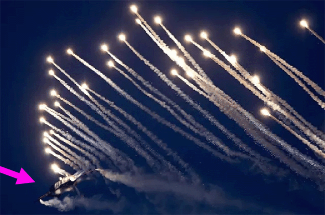 Το κλασσικό αντίμετρο αυτοπροστασίας που έχουν τα πολεμικά αεροσκάφη κατά των αντιαεροπορικών πυραύλων υπέρυθρης καθοδήγησης είναι τα …πυροτεχνήματα. Ο αισθητήρας καθοδήγησης του πυραύλου κοιτάει και κυνηγάει τα πυροτεχνήματα και το αεροπλάνο ξεφεύγει.