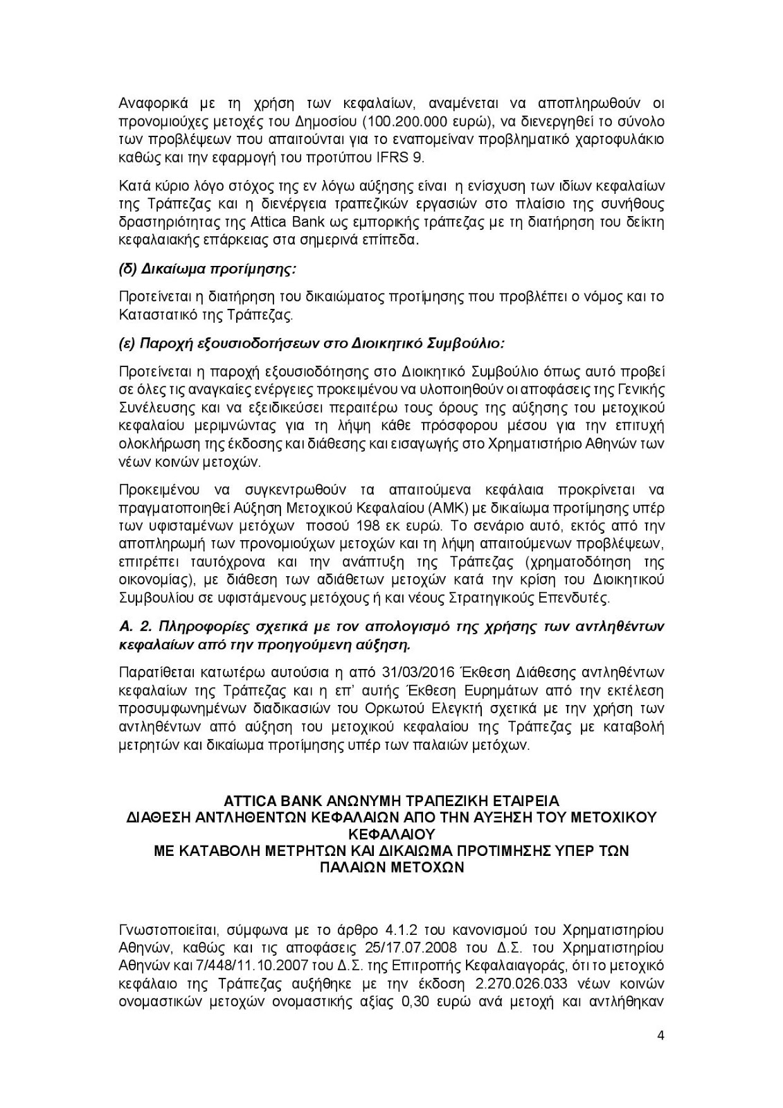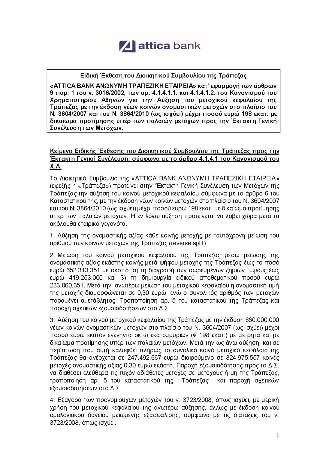 Με σχετικό δελτίο τύπου που εξέδωσε χθές το ΔΣ της τράπεζας Αττικής μας ανακοίνωσε για την επικείμενη αύξηση μετοχικού κεφαλαίου στην εν λόγω τράπεζα ύψους 198 εκατομμυρίων ευρώ..Το ακόμη πιο απίστευτο του εν λόγω δελτίου είναι πως για την αύξηση μετοχικού κεφαλαίου διορίστηκε ως σύμβουλος ο επενδυτικός οίκος των Ρότσιλντ..
