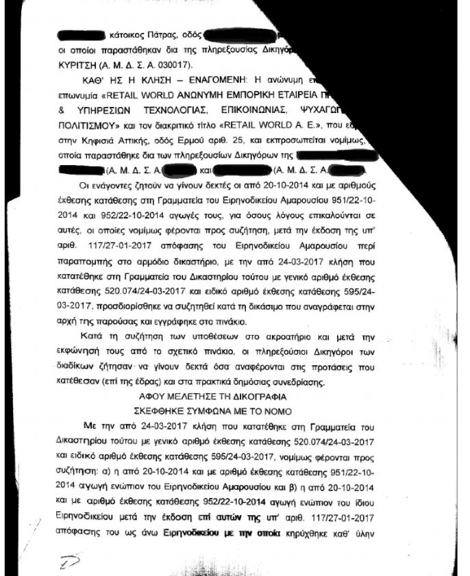 *Ο Γ.Ζ. αναφέρεται μόνο με τα αρχικά του για λόγους προστασίας των προσωπικών δεδομένων τού ίδιου και της οικογένειάς του. Για τον ίδιο λόγο έχουν σβηστεί και τα ονόματα των εναγόντων στη δικαστική απόφαση, μέρος της οποίας δημοσιεύουμε παρακάτω. Διευκρινίζεται ότι όλα τα ονόματα είναι στη διάθεση του TPP.